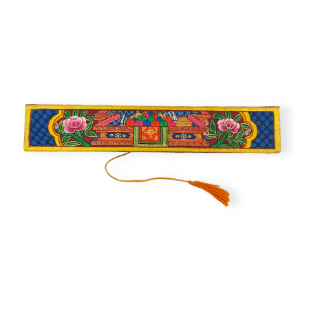 Cajas con inciensos realizadas en Lokta (papel de arroz natural) pintadas a mano por pintores de Thangkas, por lo que cada caja es única. Incluye 2 paquetes de incienso Bhim Lama de 10 barritas cada uno ("Nag Campa" y "Meditación")