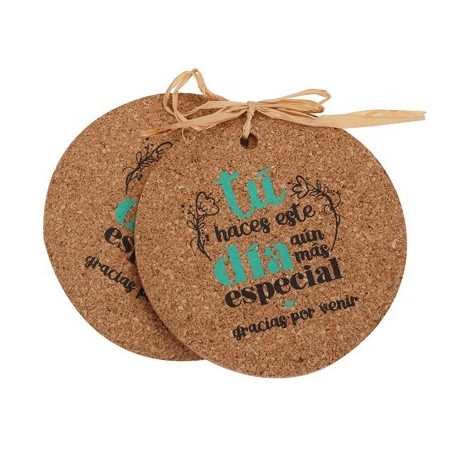 Set de 2 posavasos de corcho con frase de agradecimiento