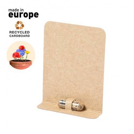 Cápsula con semillas presentada en estuche de cartón reciclado con instrucciones de plantado. Contiente semillas de flores silverstres de colores surtidos.
