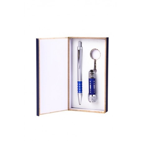 SET BOLIGRAFO + LLAVERO LINTERNA EN CAJA AZUL