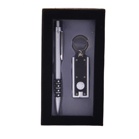 SET BOLIGRAFO + LLAVERO LINTERNA LED ESTUCHE NEGRO