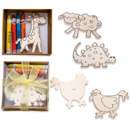 Contiene 4 imanes de madera y 4 ceras de colores.