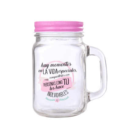Jarra de cristal frases con tapa metálica y caña de pvc a juego.