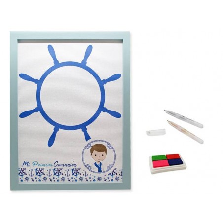 Incluye marco, 2 boligrafos, 6 tintas de colores y peana informativa.