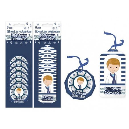 • LOTE 6 ETIQUETAS COLGANTES MARINERO COMUNIÓN NIÑO