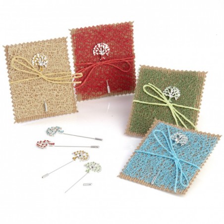 Alfiler árbol de la vida presentado en cartón kraft con lazo de rafia.