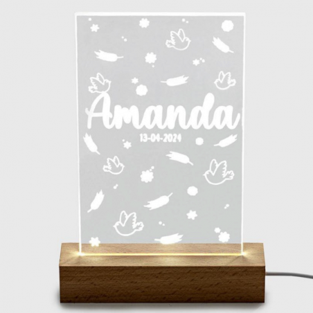 LÁMPARA LED COMUNIÓN PERSONALIZADA METACRILATO BASE MADERA USB
