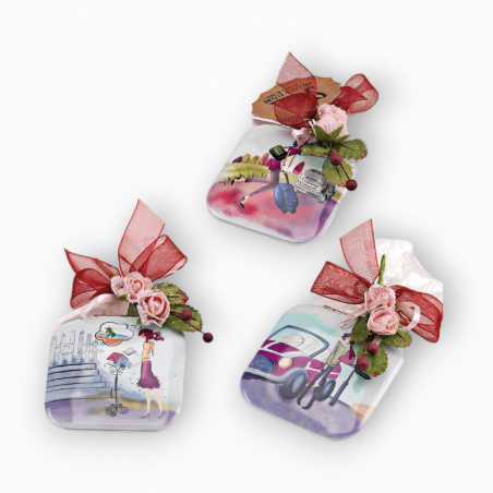 ESPEJO DOBLE ALUMINIO CHICAS ACUARELA CON BOLSA RAMILLETE Y LAZO