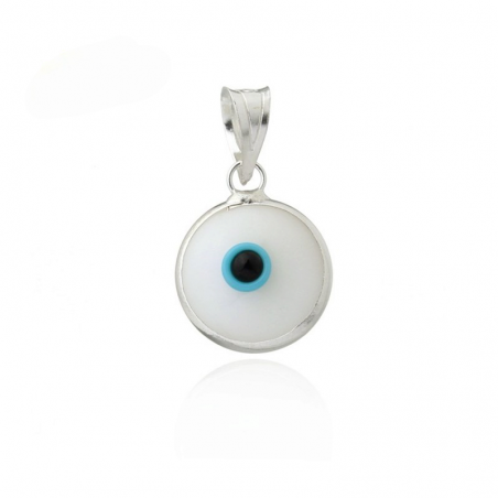 Colgante ojo turco blanco de vidrio tipo murano engarzado el plata de ley.