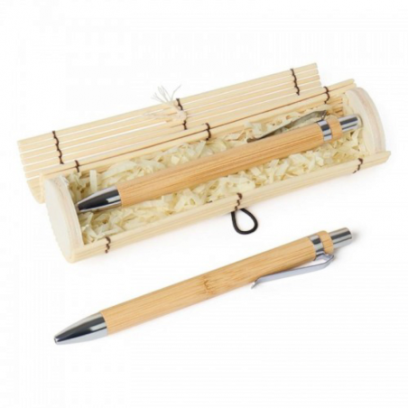 BOLÍGRAFO DE MADERA EN CAJA DE BAMBÚ
