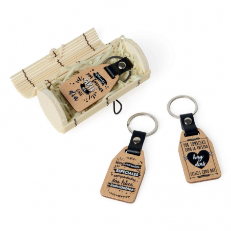 LLAVERO MADERA FRASES EN CAJA DE BAMBÚ