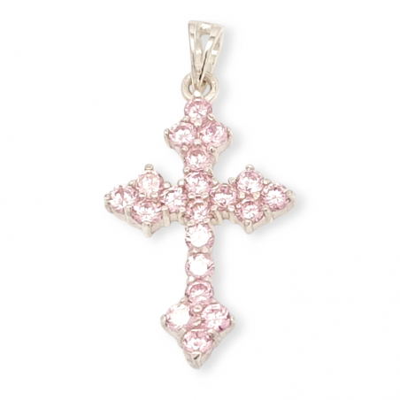 COLGANTE CRUZ DE PLATA CON CIRCONITAS ROSA