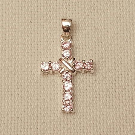 COLGANTE CRUZ DE PLATA CON CIRCONITAS ROSAS