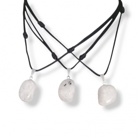 Colgante mineral "piedra luna" con cordón de nudos corredizos o sin cordón.