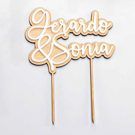 DECORACIÓN PARA TARTA NOMBRES MADERA Y METACRILATO BLANCO