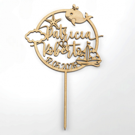 No olvide guardar su personalización para poder añadirla al carritoCake Topper de madera personalizado con nombres y fecha.
